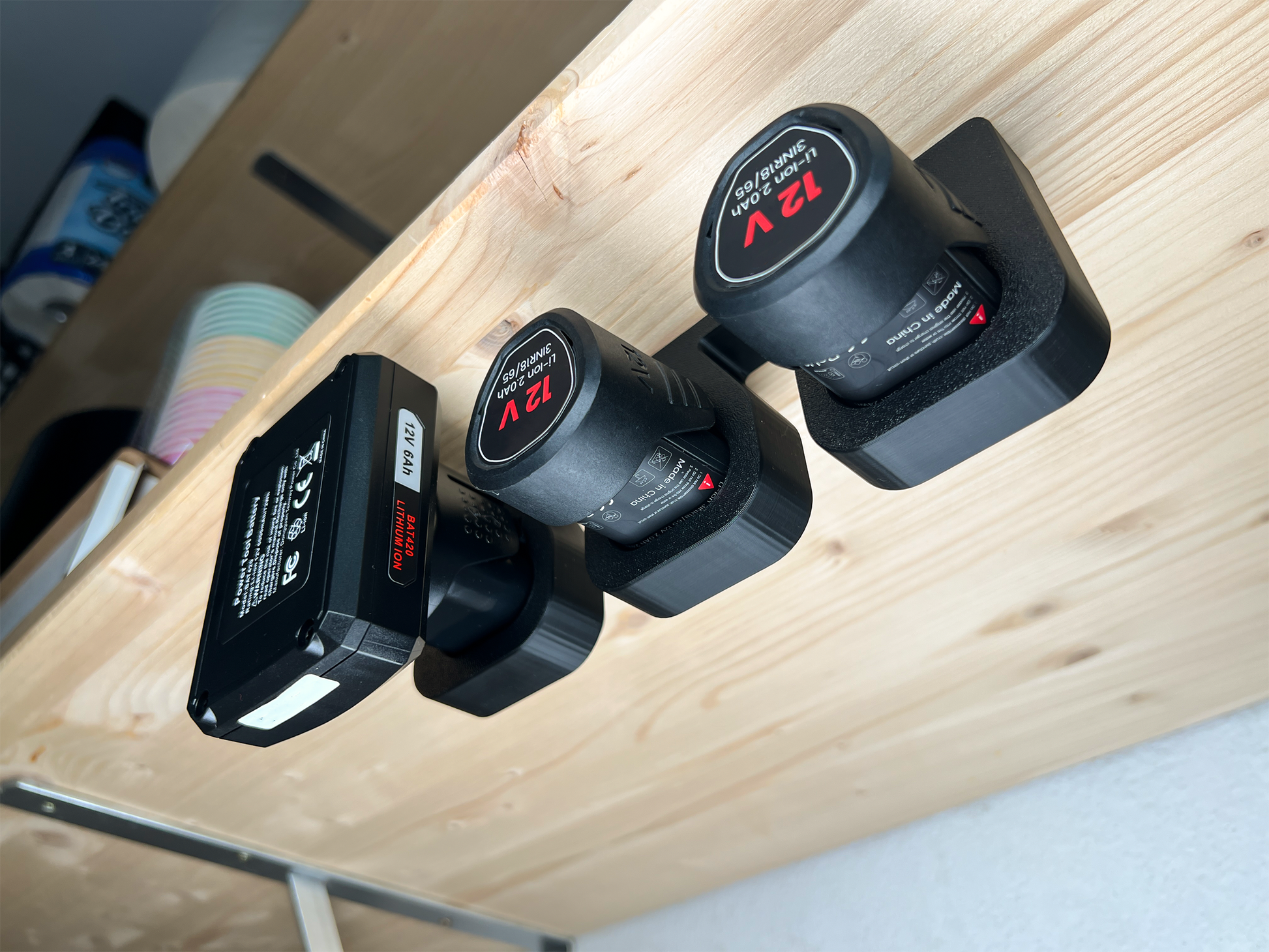 Decoralin Wall Mount for Bosch 12V Battery – Compatible with Bosch GBA Professional & BAT Home Series – Battery Holder Organizer for 12V Power Tools – Holds 3 Batteries – Made in Europe